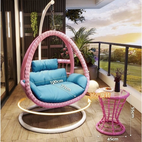 Moderner Schaukel stuhl im Freien mit Rattan stoff Kunststoff Metall Eier stuhl Schaukel mit Ständer