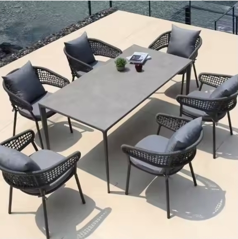 XY, muebles de exterior modernos personalizados, juego de Patio de aluminio resistente a los rayos UV, sillas de jardín de cuerda tejida, mesas para sala de estar